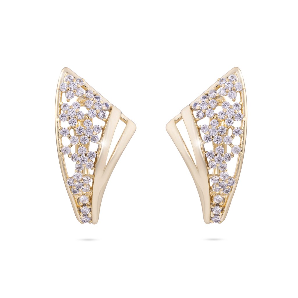 - Pozlacené náušnice 14k, asymetrický typ se zirkonovými květinami.