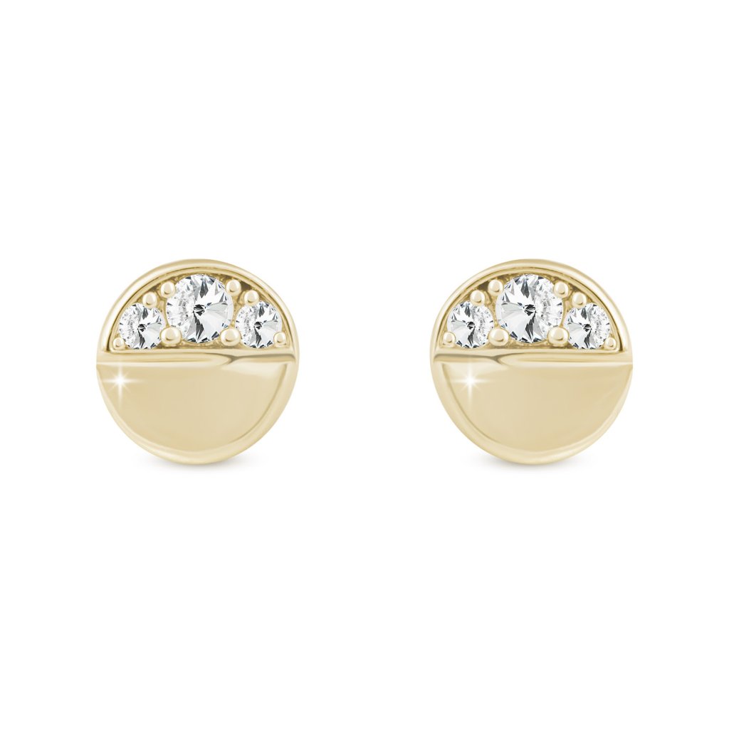 Pozlacené náušnice 14k, pecky ve tvaru pokrouceného kolečka se zirkony. Velmi kvalitní zpracování.