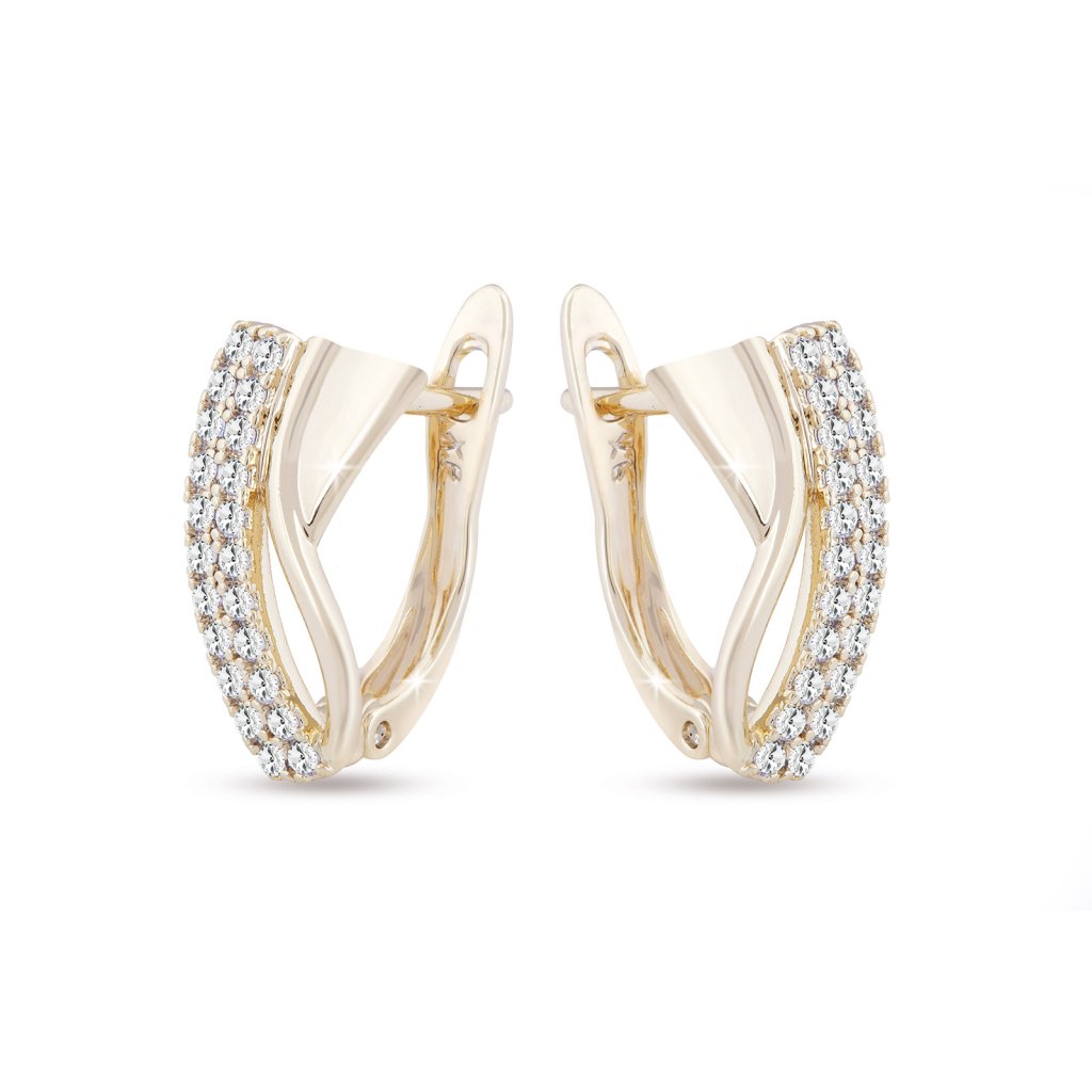 Pozlacené náušnice 14K, geometrické linie ozdobené zirkony 1002151