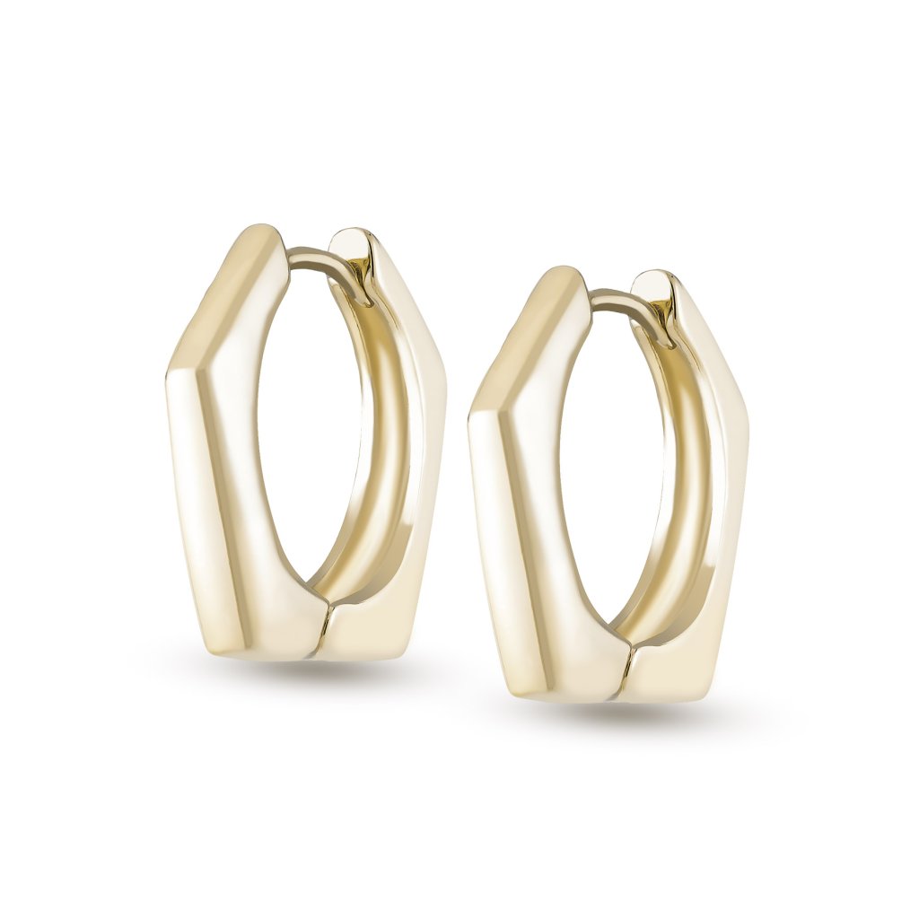 Pozlacené náušnice 14 k zlatem, ve tvaru hranatého kroužku.