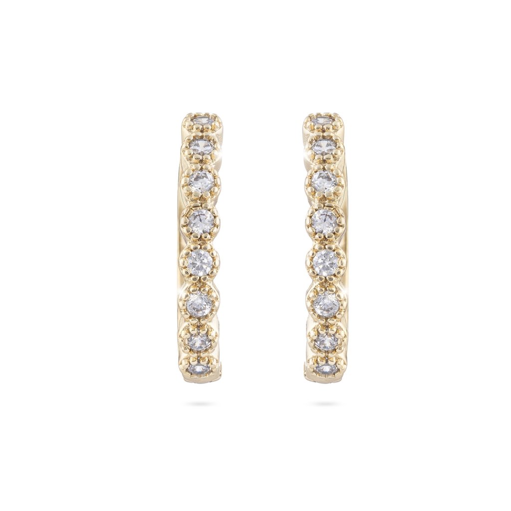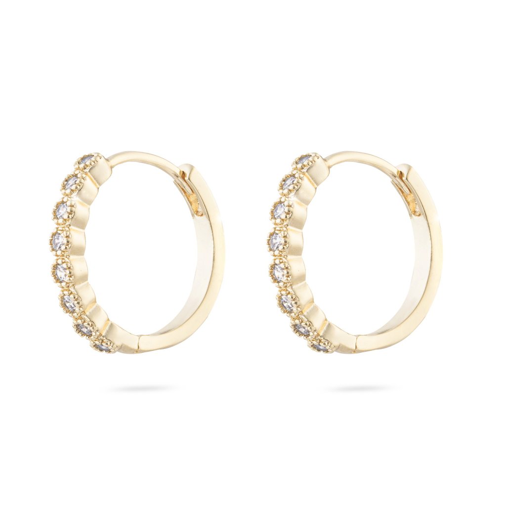 - Představujeme vám tyto krásné 14karátové pozlacené náušnice ve tvaru kroužku s drobnými kubickými zirkony. Pevné mechanické zapínání zajistí, že se při nasazování nepoškodí ani nepodráždí, a zároveň zůstane bezpečně po celou dobu nošení. Tyto náušnice jsou antialergické, takže je lze bezpečně a elegantně nosit každý! Nenechte si ujít příležitost dodat vašemu šatníku jiskru.