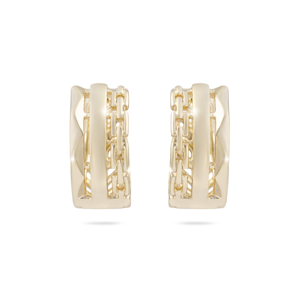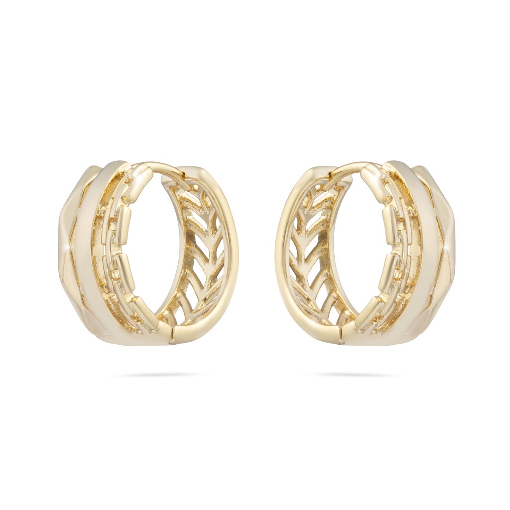Pozlacené náušnice 14K, kroužek ozdobený asymetrickými průřezy 1002811