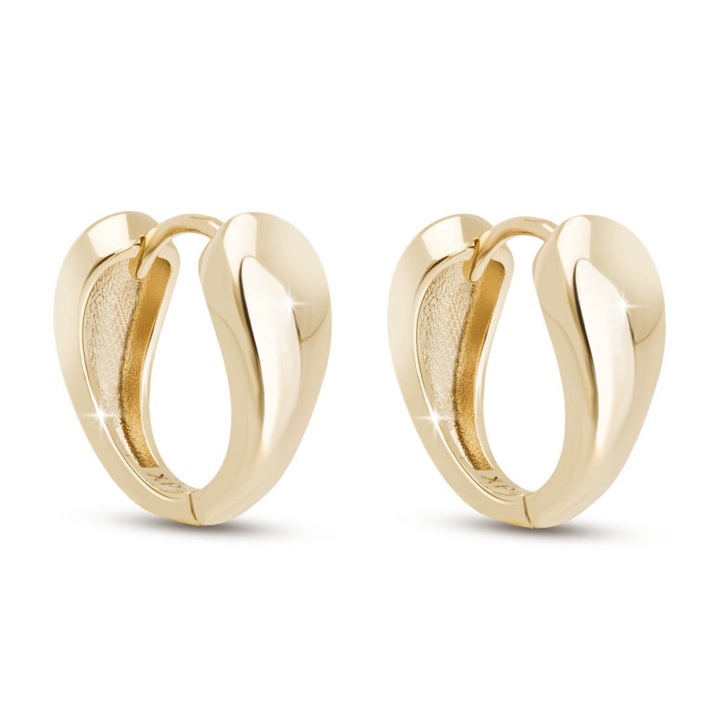 Pozlacené náušnice 14k zlatem, decentní jemné kroužky. Tvar kapky se rozšiřuje směrem k uchu.