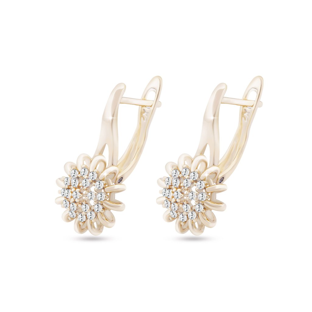 Pozlacené náušnice 14k ve tvaru kvítku se zirkony, mají velmi kvalitní zpracování. Zapínaní ruský patent.