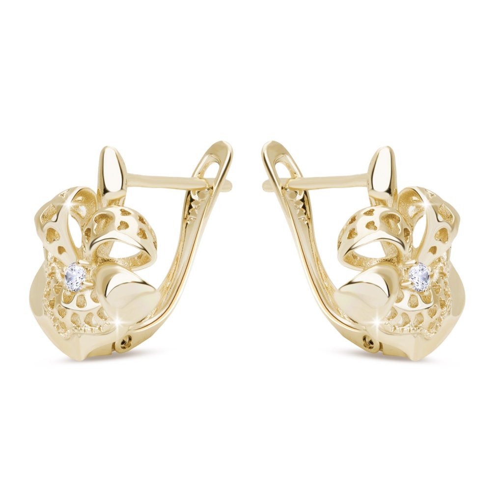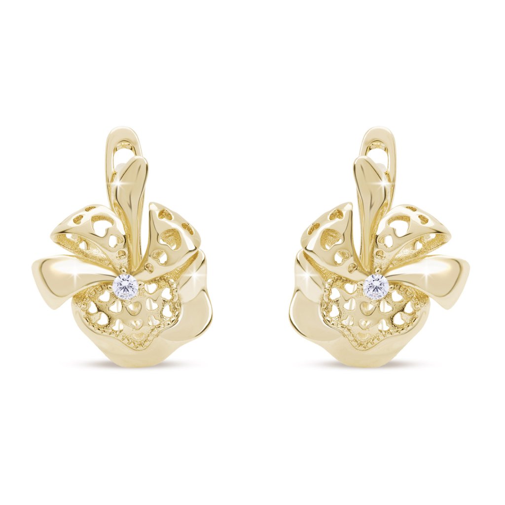 Pozlacené náušnice 14k, kytička ozdobená průřezy se srdíčky a zirkony 1002885