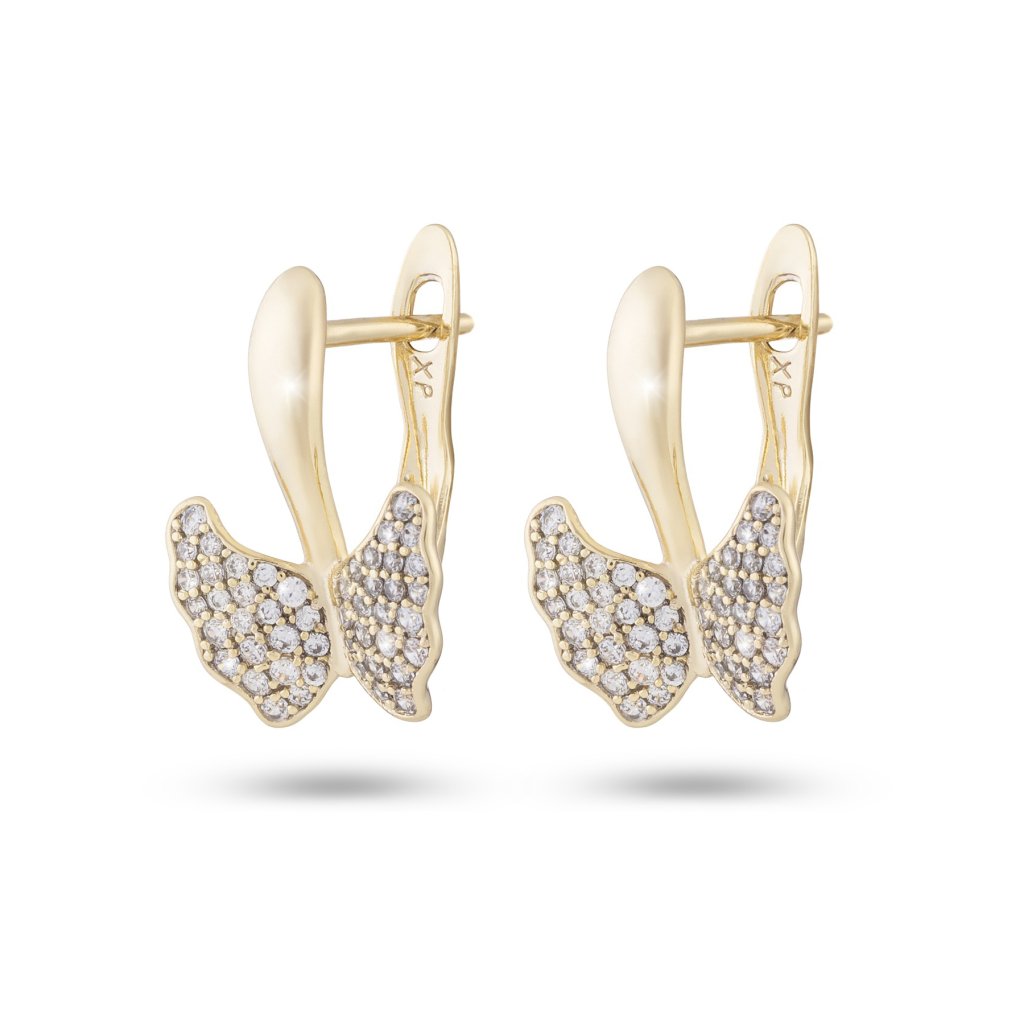 Pozlacené náušnice 14k, motýl vyskládaný zirkony 1002340