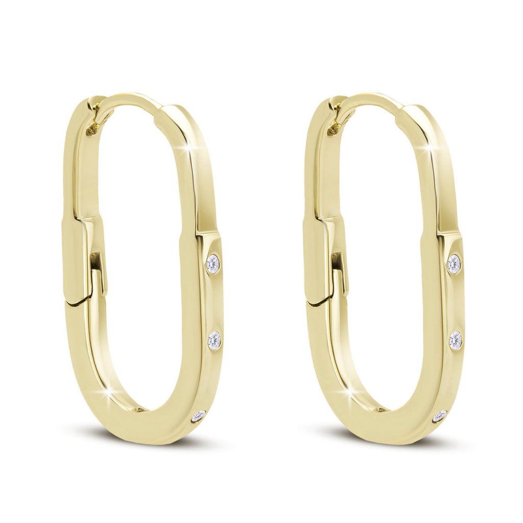 Pozlacené náušnice 14k, ovál se zirkony 1003320