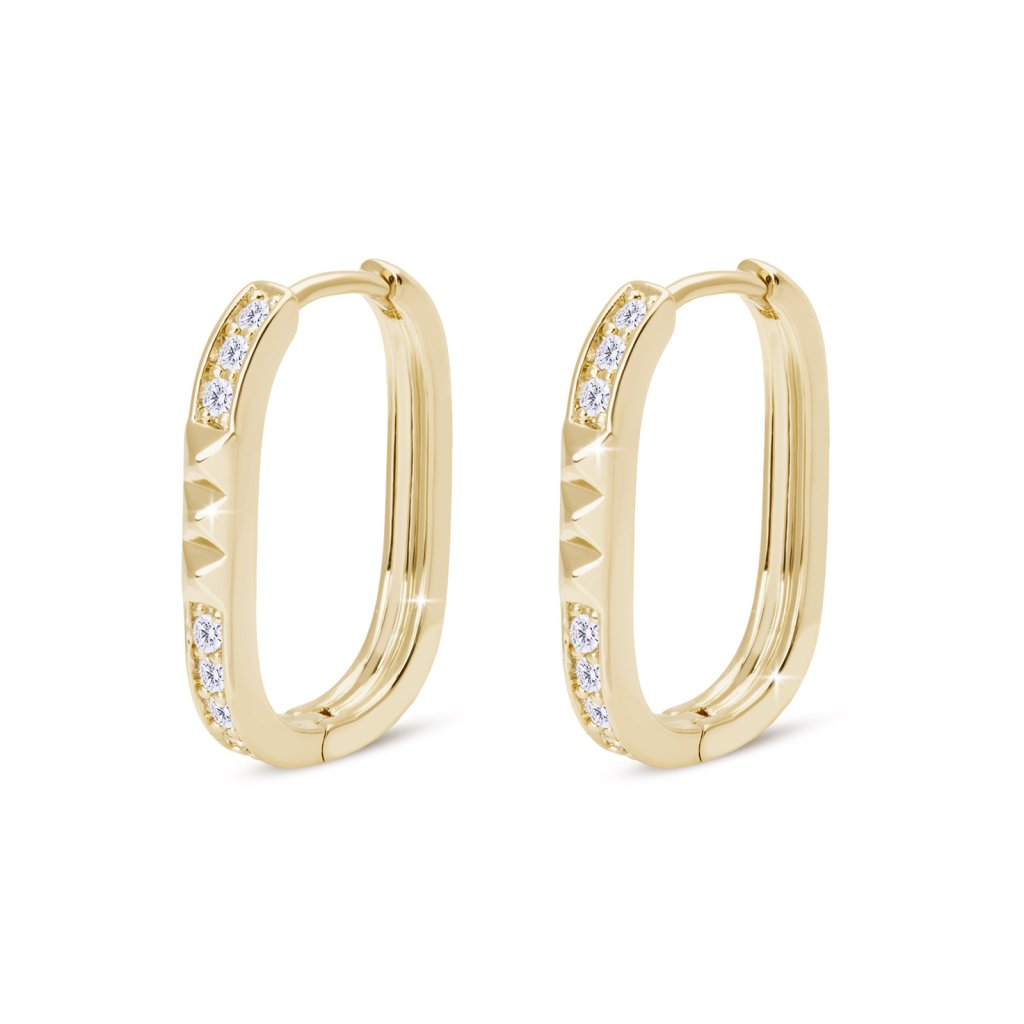 - Představujeme vám tyto krásné 14karátové pozlacené náušnice s ovály zdobenými gravírováním a kubickými zirkony. Pevné mechanické zapínání zajistí, že se při nasazování nepoškodí ani nepodráždí, a zároveň zůstane bezpečně po celou dobu nošení. Tyto náušnice jsou antialergické, takže je lze bezpečně a elegantně nosit každý! Nenechte si ujít příležitost dodat vašemu šatníku jiskru.