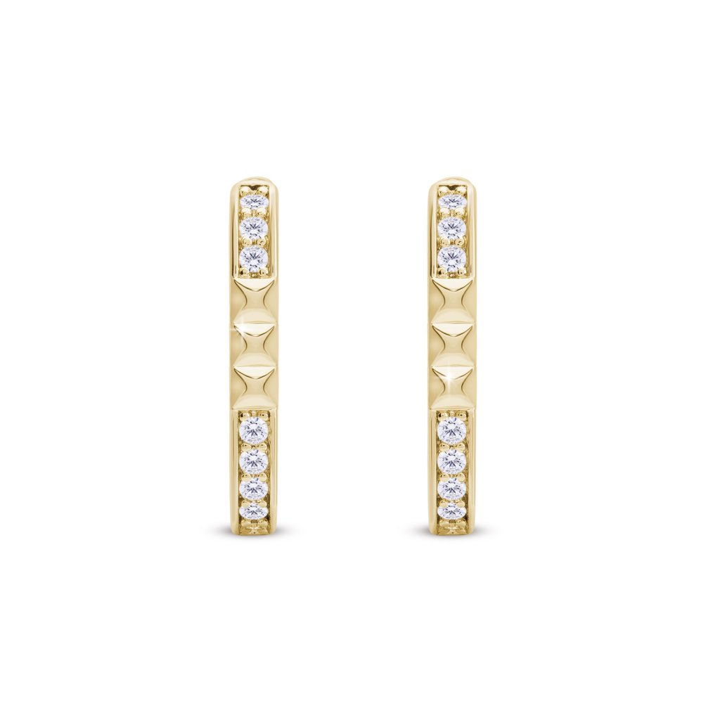 - Pozlacené náušnice 14k, oválky zdobené rytinou se zirkony.