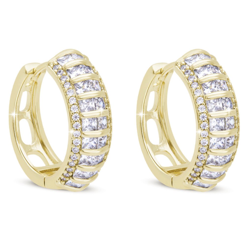 Pozlacené náušnice 14k, pásy zirkonů 1003316