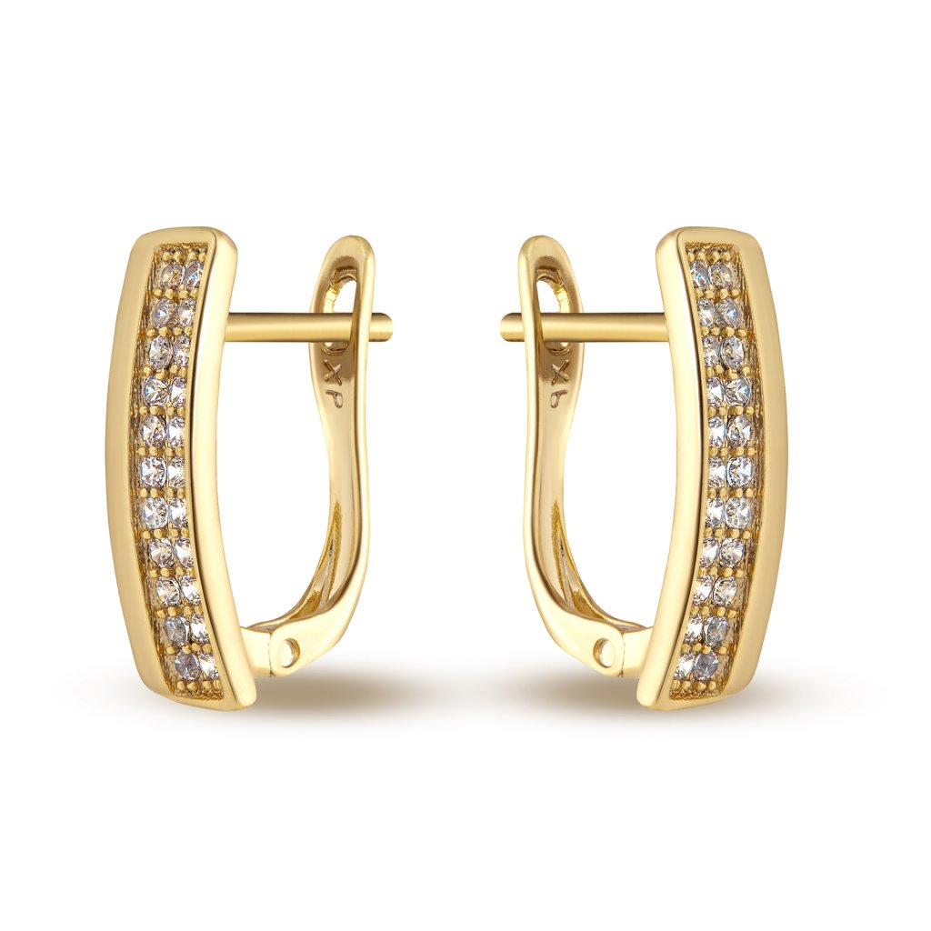 - Pozlacené náušnice 14k, proužek ozdobený pásy zirkonů.