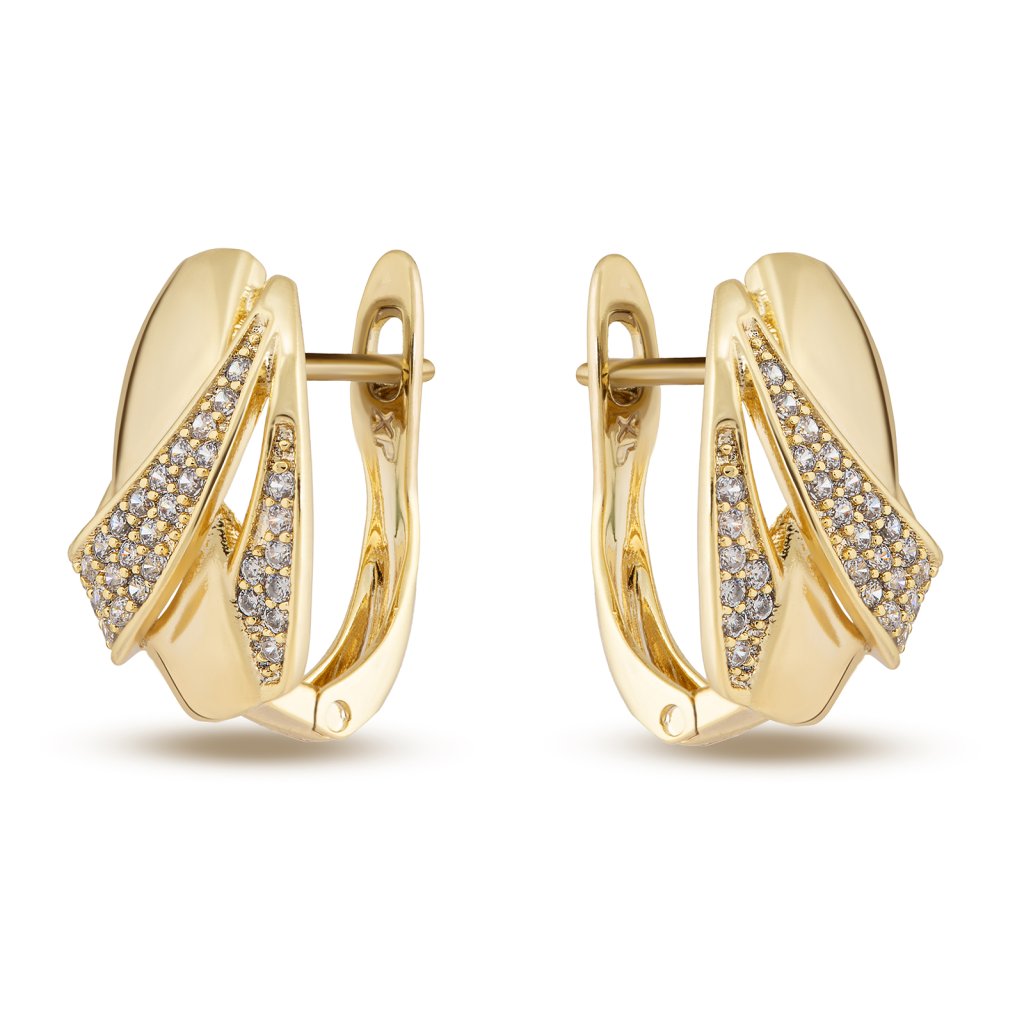Pozlacené náušnice 14k, proužek se zirkonovou stuhou 1002598
