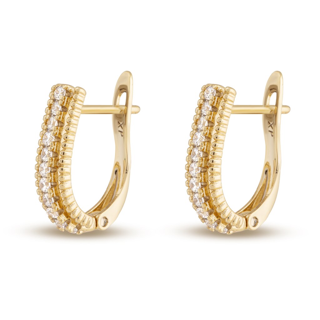 Pozlacené dámské náušnice ve tvaru tří proužků s 14 k zlatem. Náušnice jsou ozdobené pásem zirkonů.