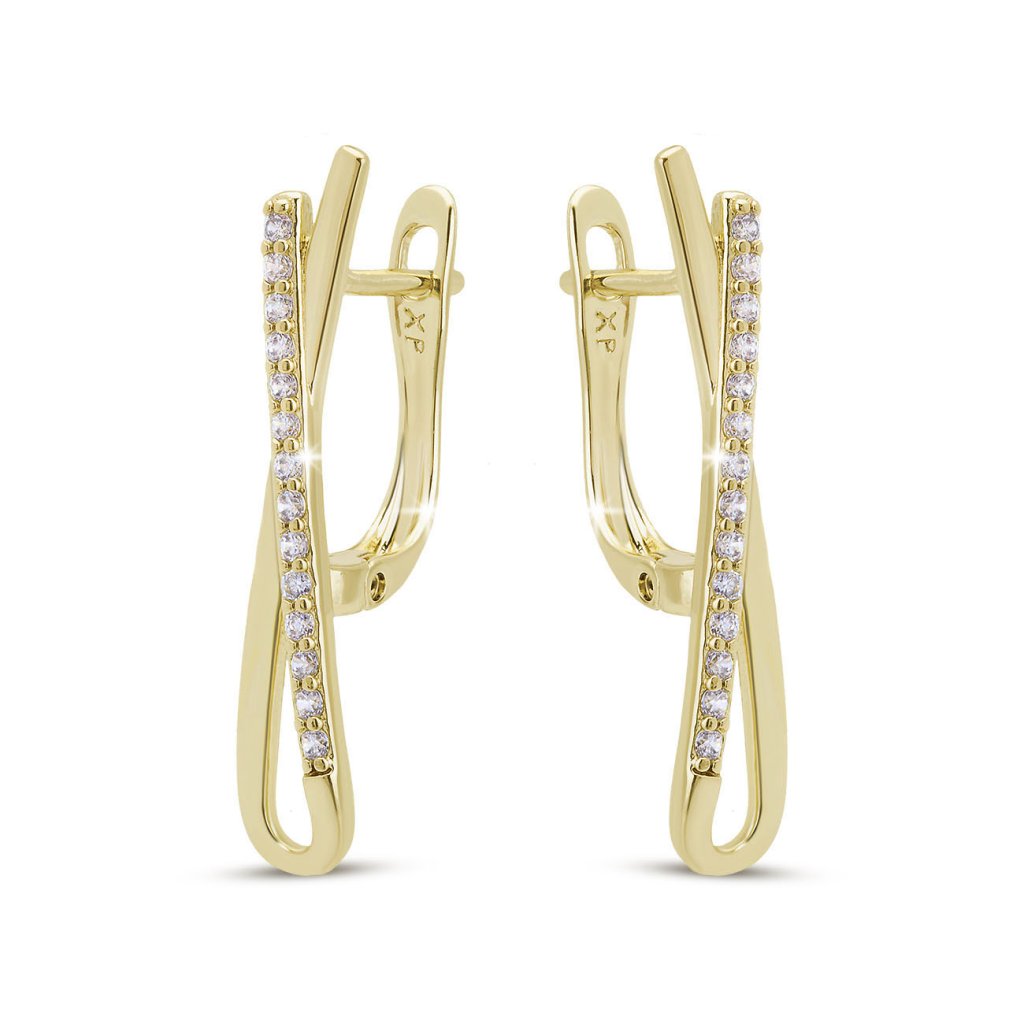 Pozlacené náušnice 14k, smyčky se zirkony 1003280