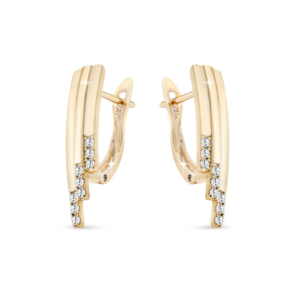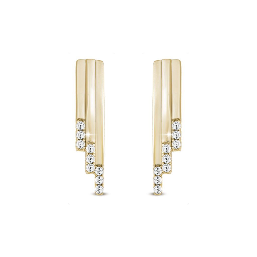Pozlacené náušnice 14K, tři zkosené linie ozdobené zirkony 1002309
