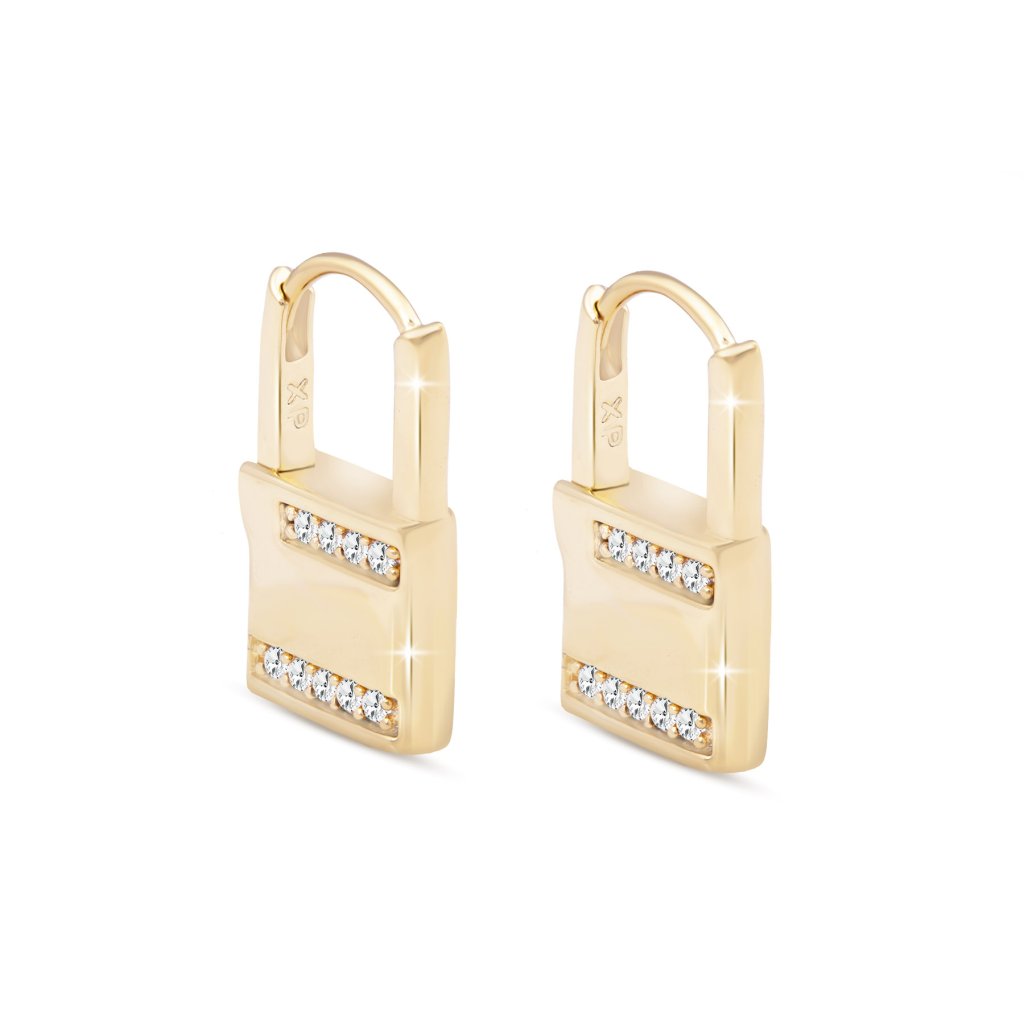 Pozlacené náušnice 14k, visací zámek se zirkony 1002215