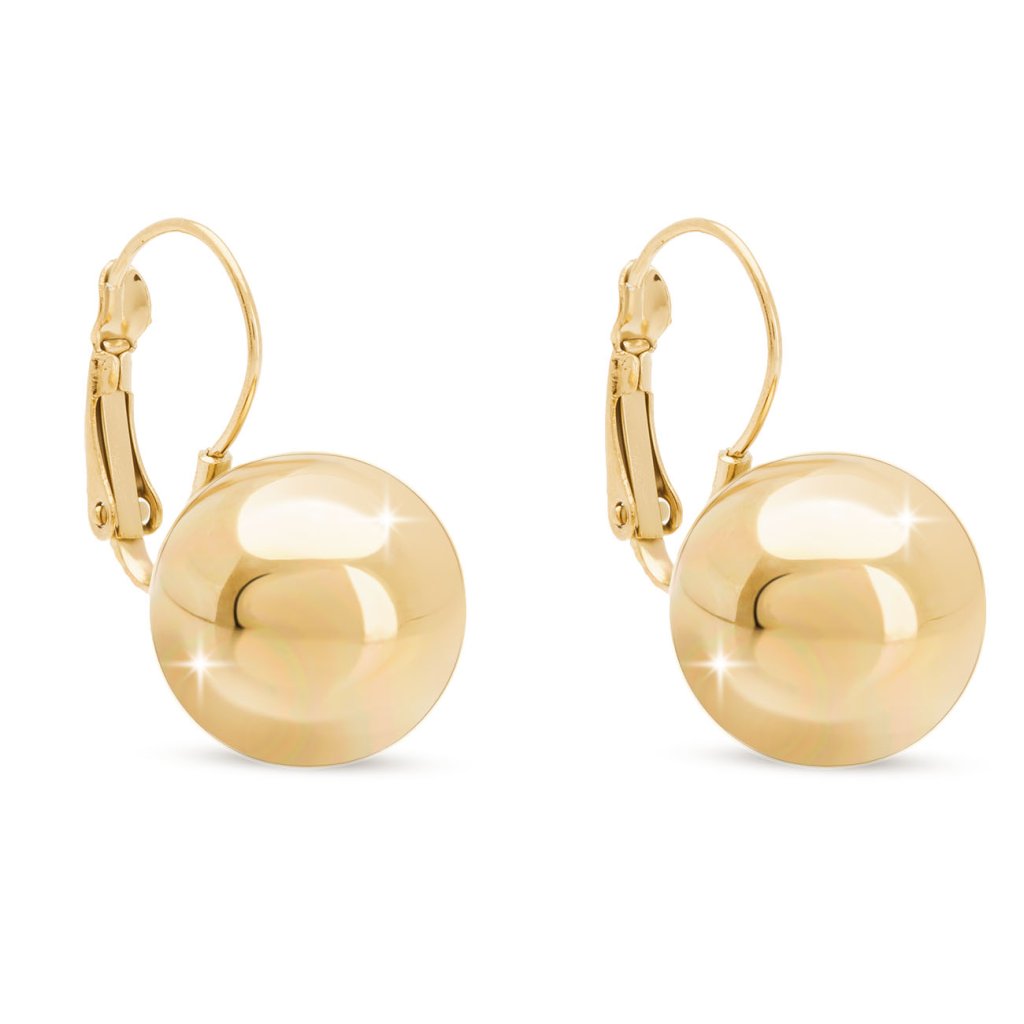 Visací pozlacené náušnice 14k z chirurgické oceli s velkou kuličkou.