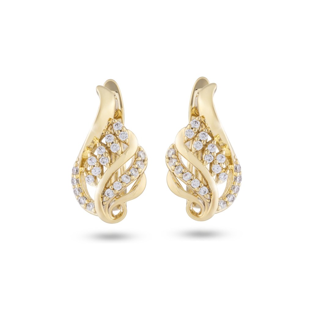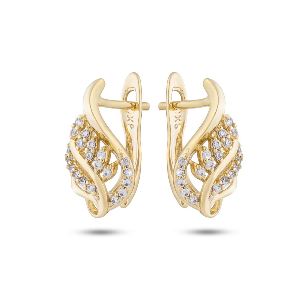 Pozlacené náušnice 14k, zakroucený list se zirkony 1002321