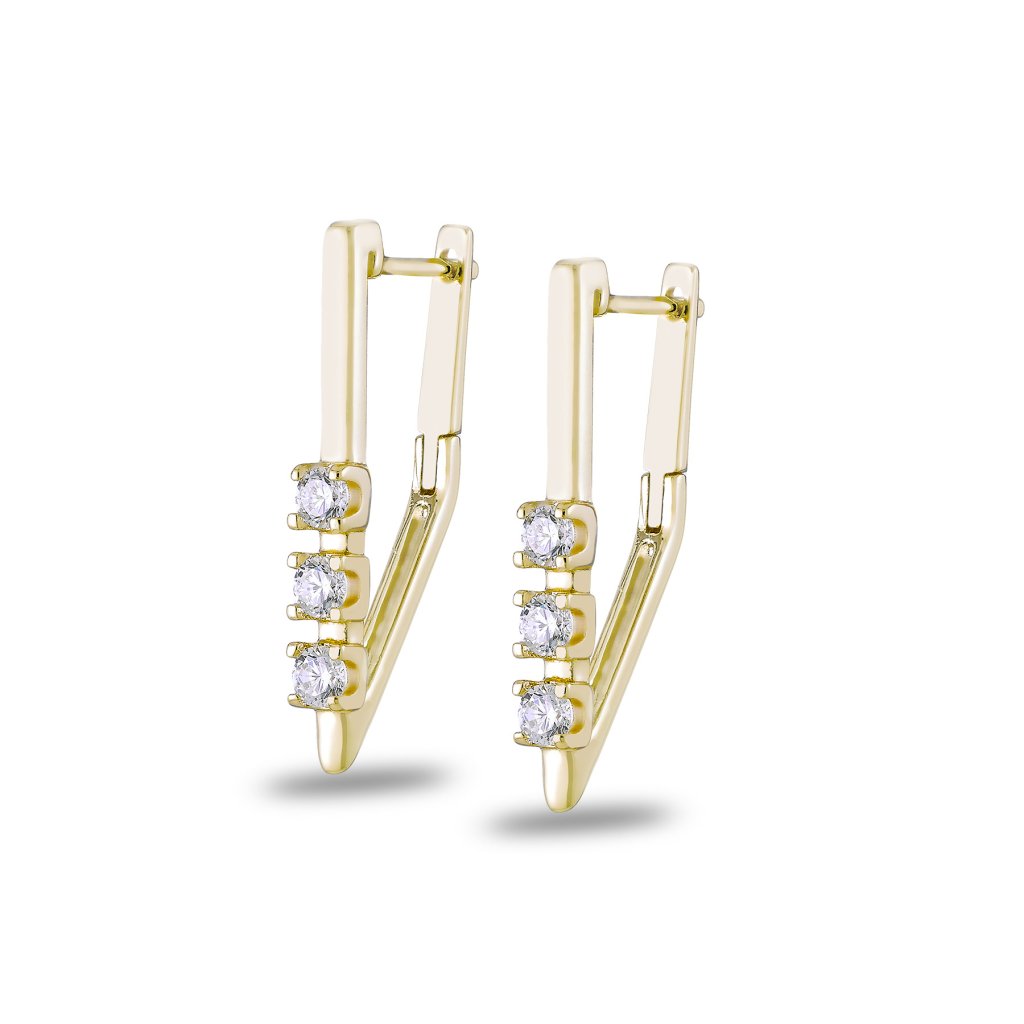 Pozlacené náušnice 14k zkosená linie ozdobená třemi zirkony. Velmi kvalitní zpracování. Zapínaní ruský patent.