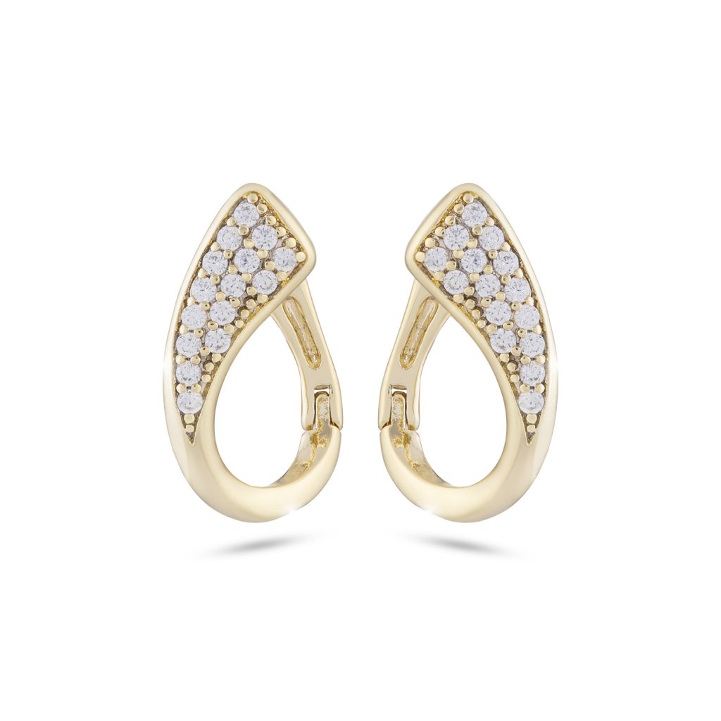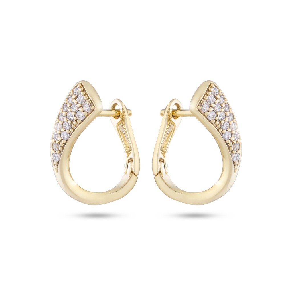 Pozlacené náušnice 14k, zkroucená kapka ozdobená zirkony 1002336