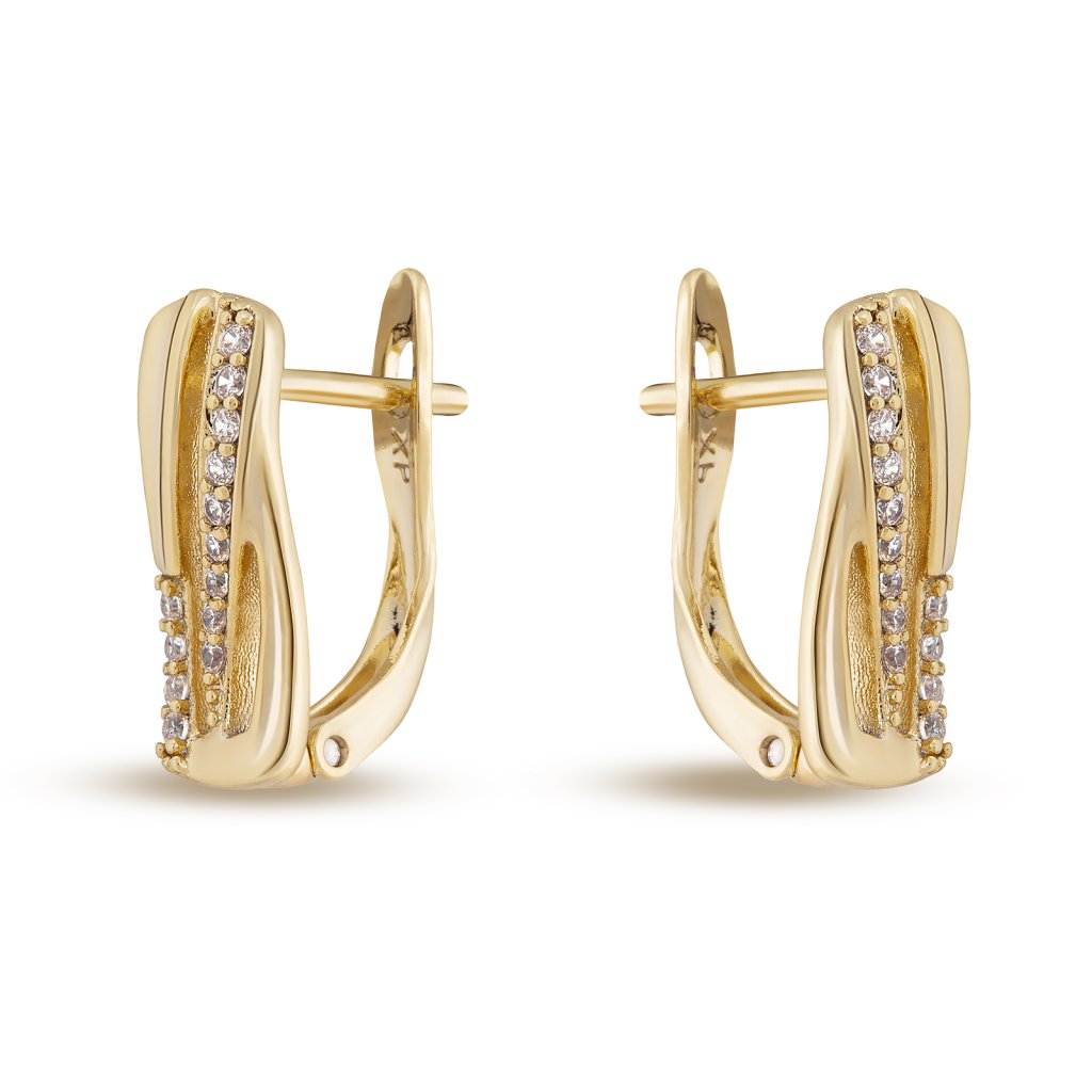 Pozlacené náušnice 14k geometrický tvar, ozdobený pásy zirkonů 1002223