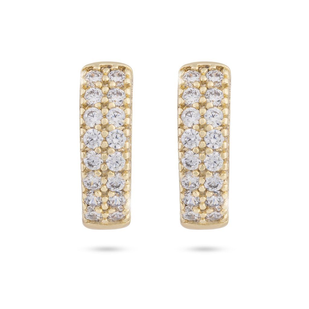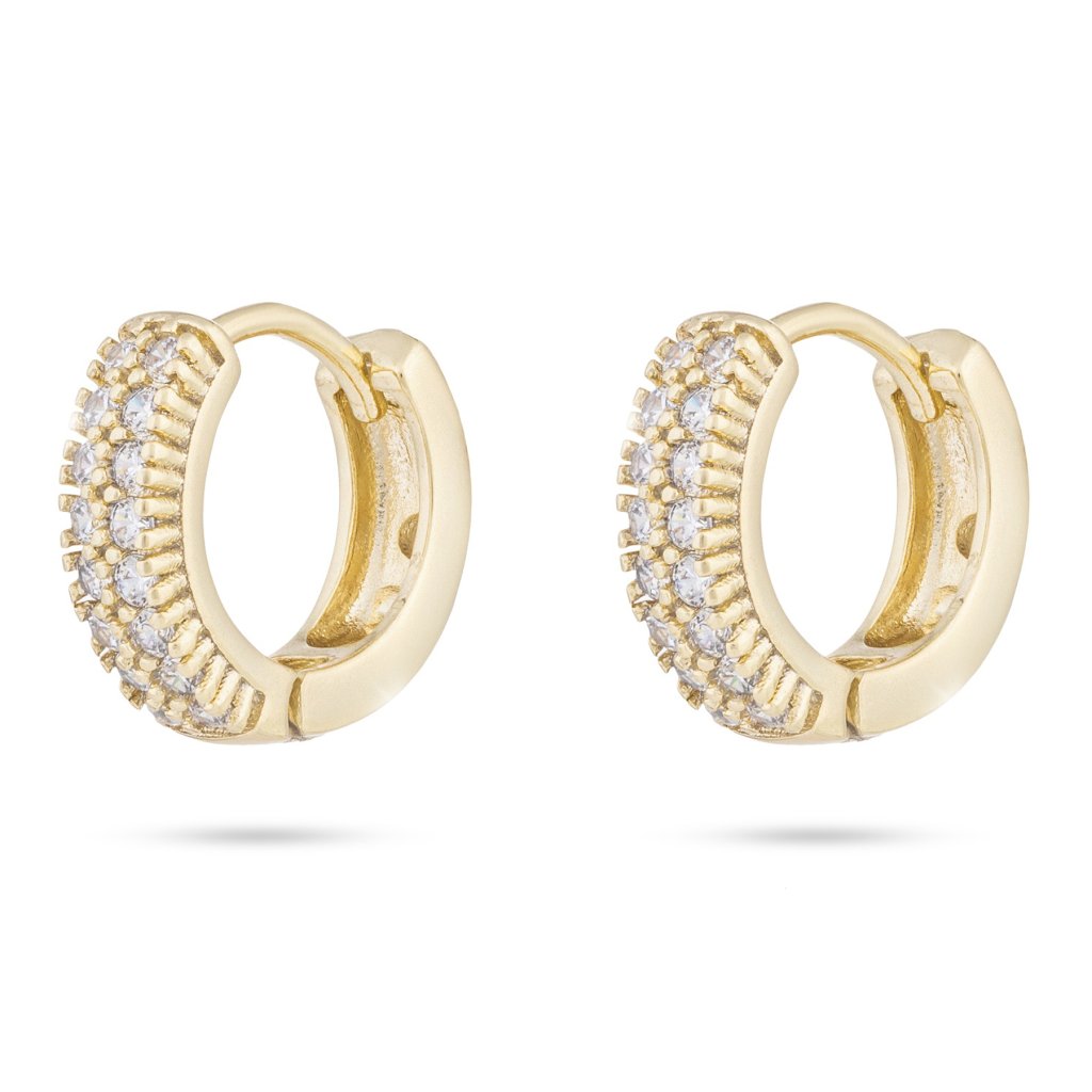 Pozlacené náušnice 14K kroužek, dva pásy vyskládané zirkony 1002426