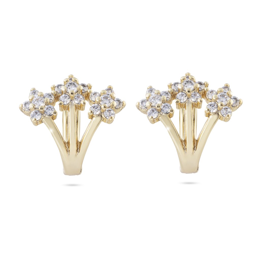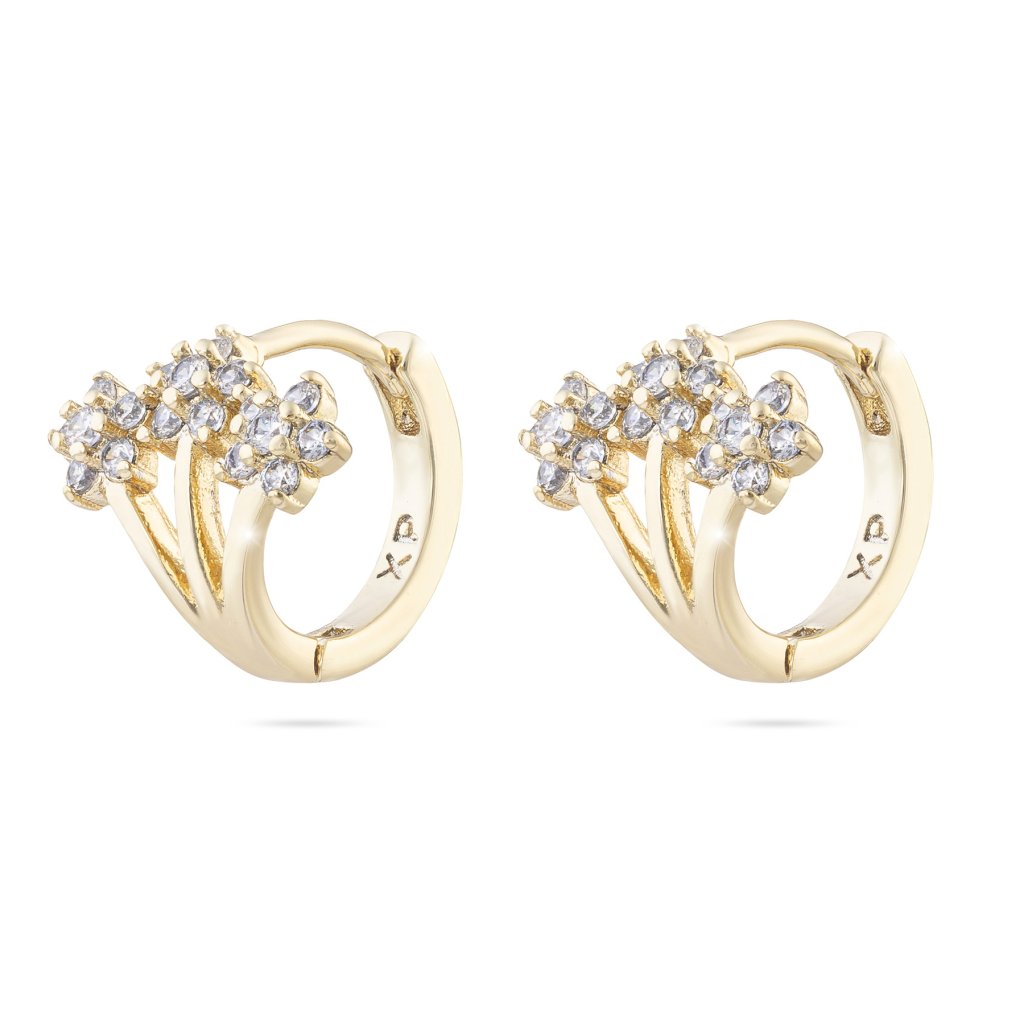 Pozlacené náušnice 14K kroužek, květiny ozdobené zirkony 1002749