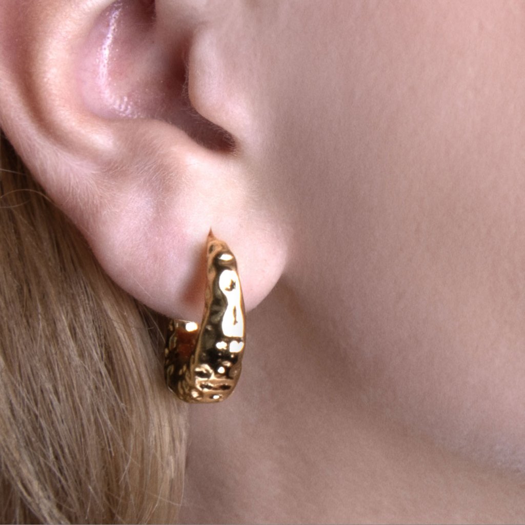 DUBAI 3170 Pozlacené náušnice 14k kroužek, mačkaný vzor Ellami