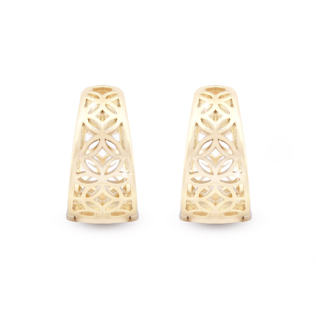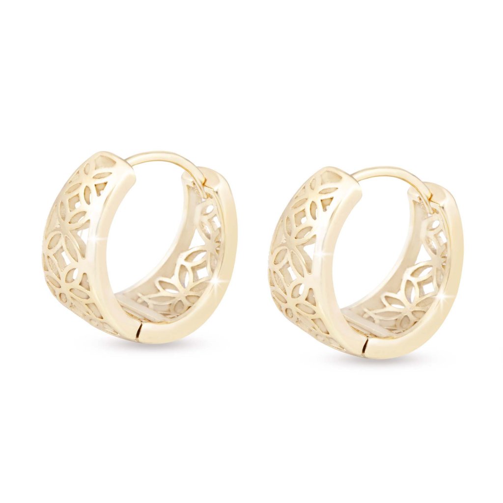 Pozlacené náušnice 14K kroužek, ozdobený květinovými průřezy.