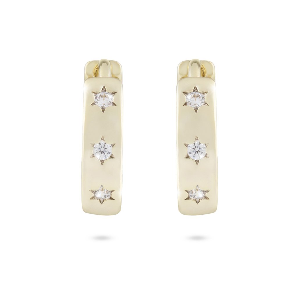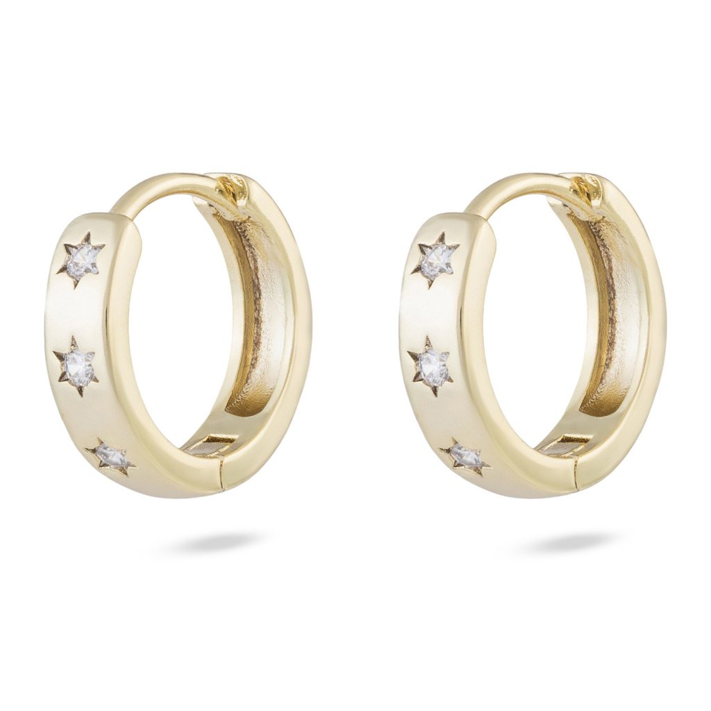 Pozlacené náušnice 14K kroužek, ozdobený hvězdičkami se zirkony.