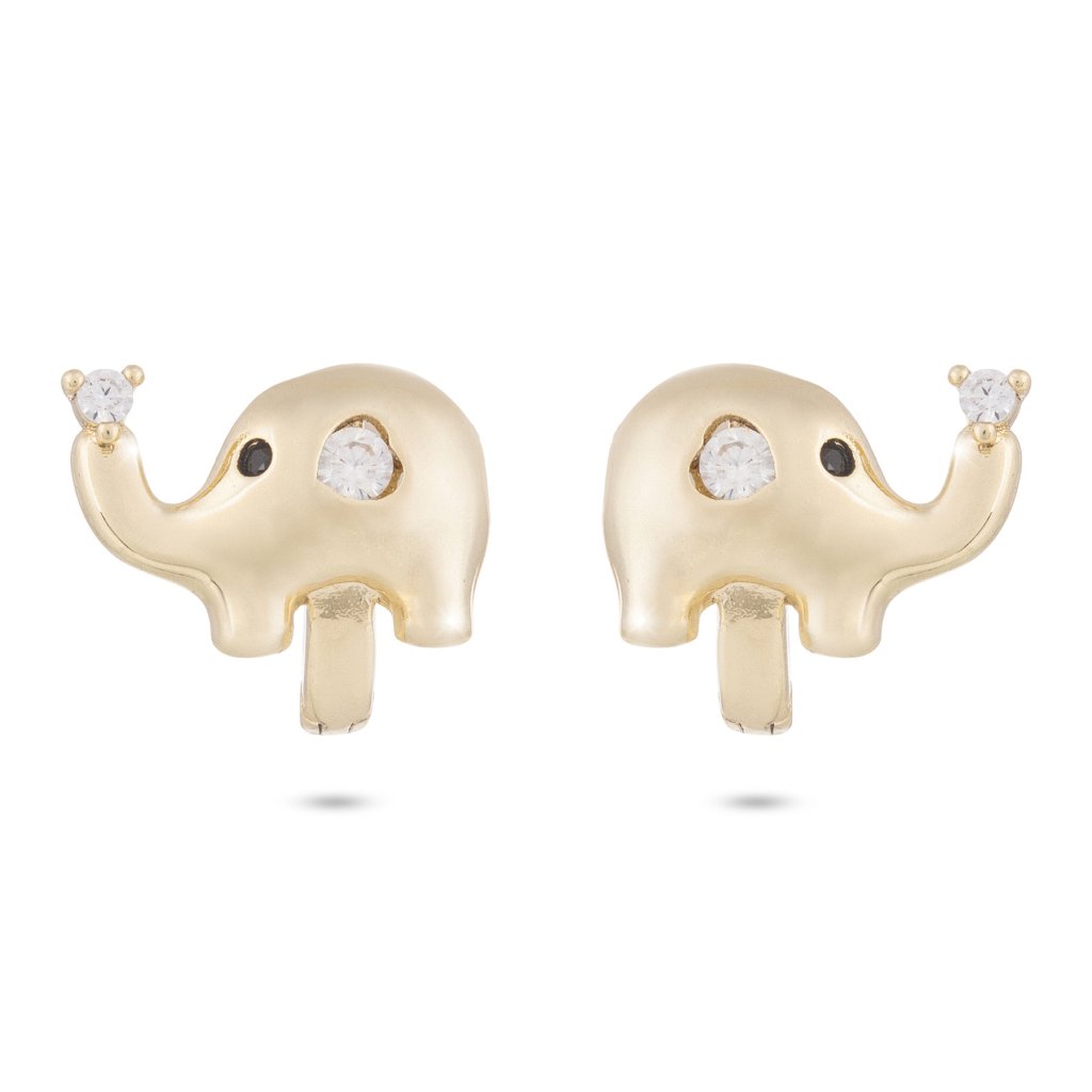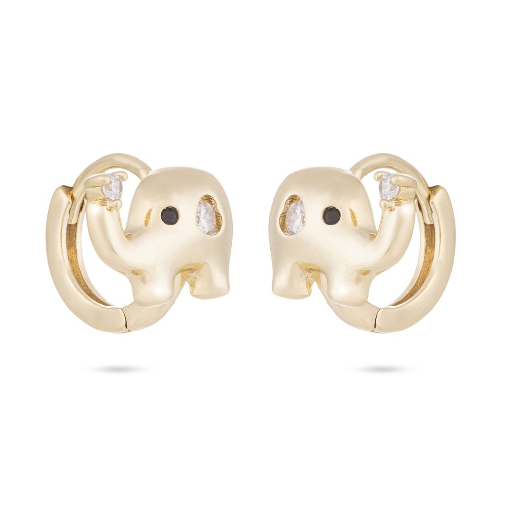 Pozlacené náušnice 14K kroužek, slon ozdobený dvěma zirkony 1002487