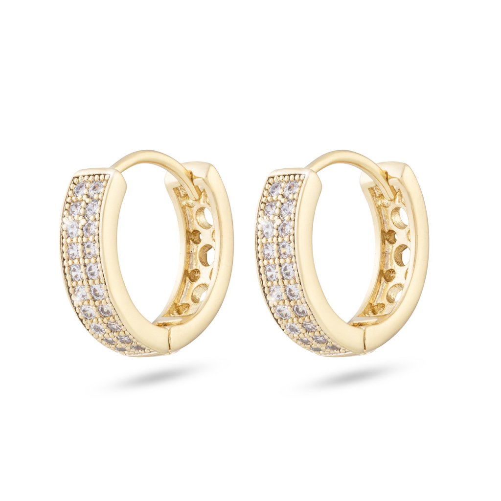 Pozlacené náušnice 14K kroužek, vyskládaný čirými zirkony.
