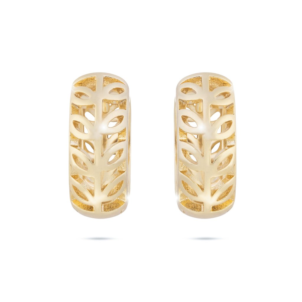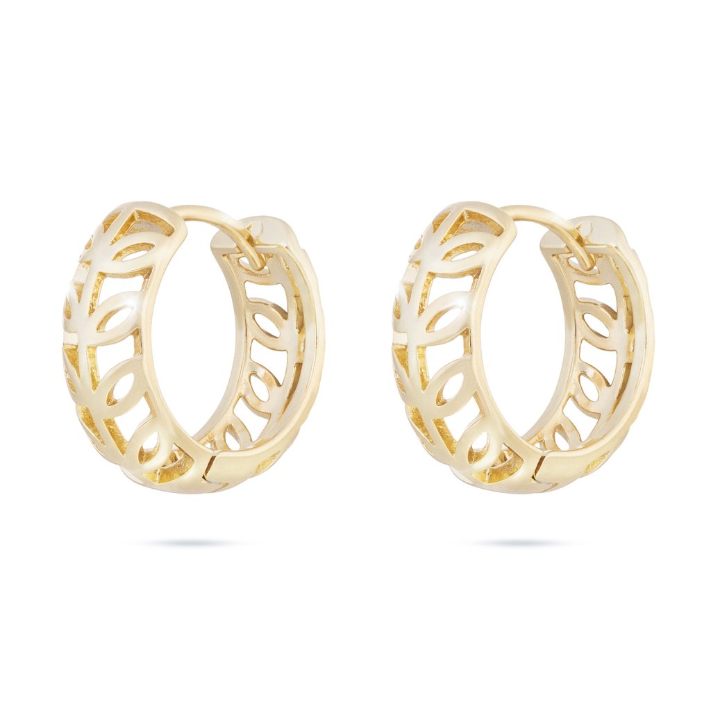 Pozlacené náušnice 14K kroužek, zdobený průřezy ve tvaru lístků.