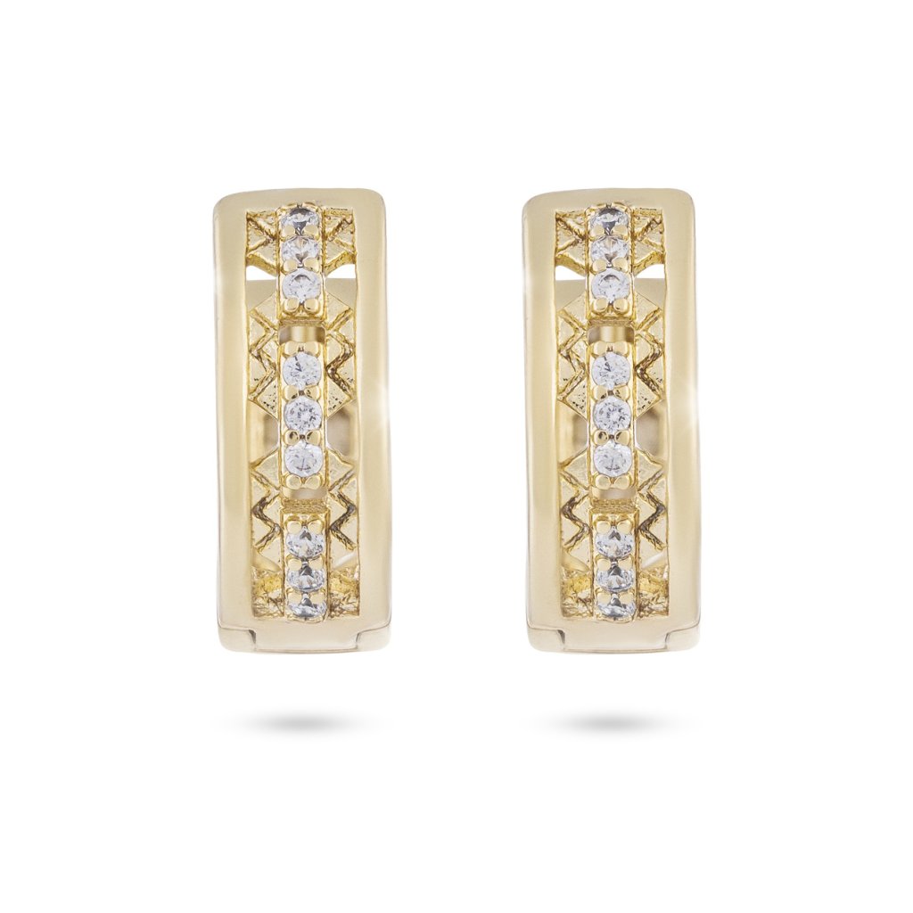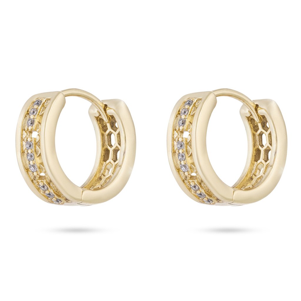 Pozlacené náušnice 14K kroužek s ozdobnými ornamenty a zirkony 1002440