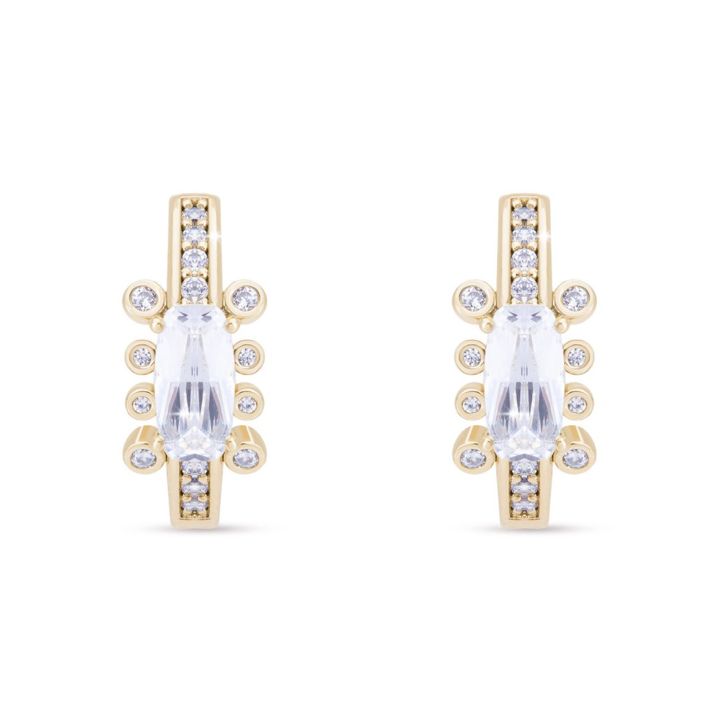 Poznejte kouzlo těchto nádherných pozlacených náušnic! Tyto jemné kruhy jsou zdobené úžasným ornamentem z kubických zirkonů, který se bude třpytit a zářit v každém světle. Tyto náušnice, které jsou dokonalou kombinací elegance a luxusu, jistě pozvednou jakýkoli outfit pro výjimečný večer nebo dodají šmrnc vašemu každodennímu stylu. Nenechte si ujít možnost vlastnit tento kouzelný kousek.