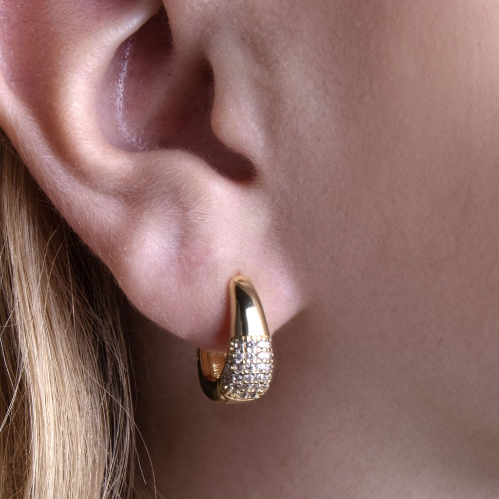 Pozlacené náušnice 14k oválky, vyskládané řadami zirkonů.