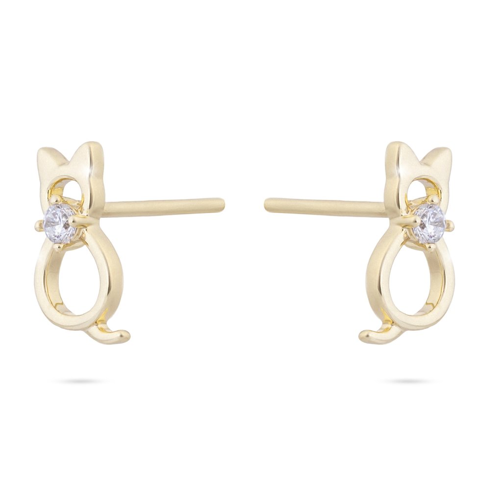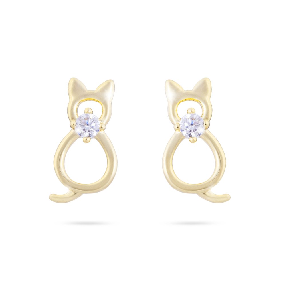 Pozlacené náušnice 14k pecky, kočička ozdobená zirkonem 1002531