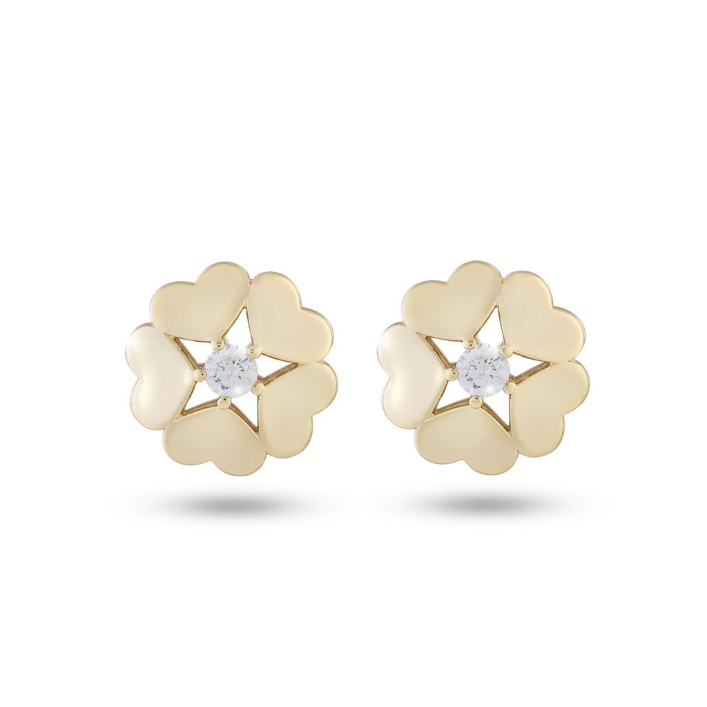 Pozlacené náušnice 14k, květina složená z pěti srdcí a zirkonem. Velmi kvalitní zpracování.
