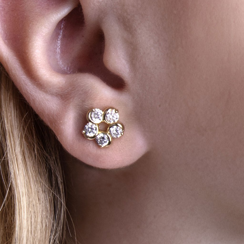 Pozlacené náušnice 14k pecky ve tvaru kytičky. Náušnice jsou tvořeny pěti natočenými zirkony. Mají velmi kvalitní zpracování.