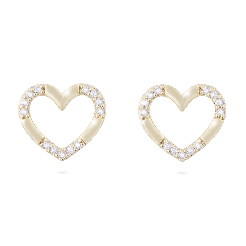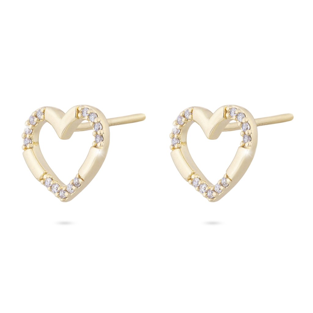 Pozlacené náušnice 14k pecky, srdce zdobené zirkony.