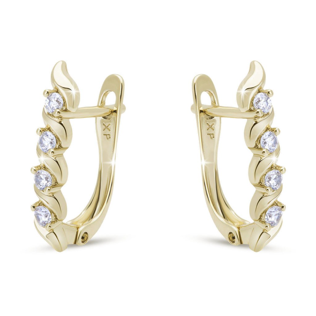 Jemné pozlacené náušnice 14k zlatem - pletený vzor s řadou čirých zirkonů.