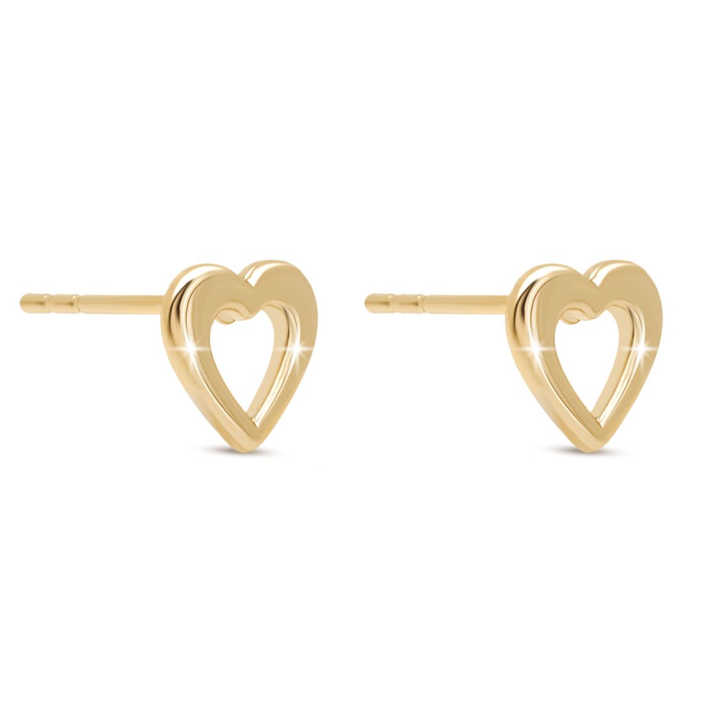 Jemné decentní náušnice, pecky s motivem srdce. Pozlacené 14k zlatem. Tyto náušnice jsou vhodné díky své velikosti i pro děti.