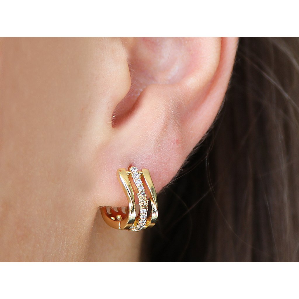 - Pozlacené náušnice 14k vlnitý kroužek se zirkony.