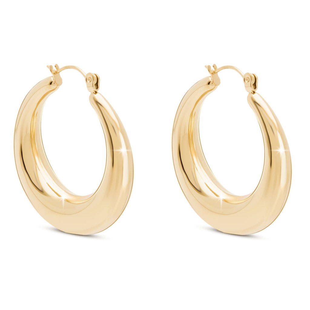 Kruhové pozlacené 14k náušnice z chirurgické oceli. Výraznější, široké kruhy klasického tvaru.
