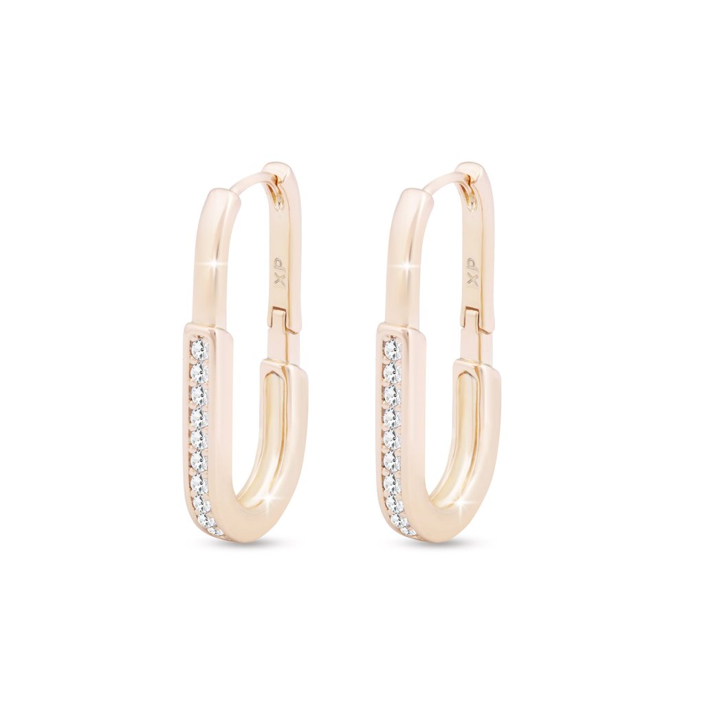 Pozlacené náušnice 18k zlatem s motivem oválku, který je ozdoben zirkony.