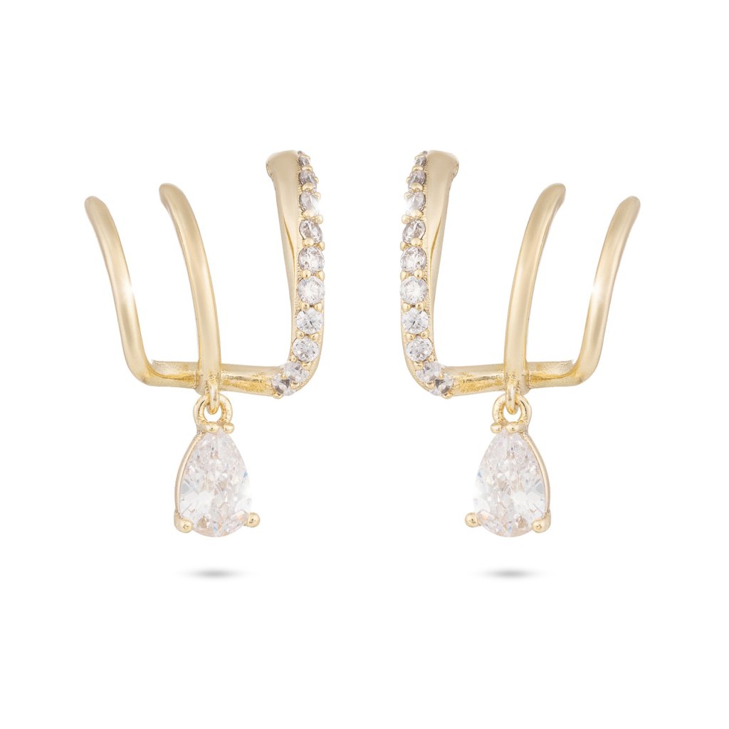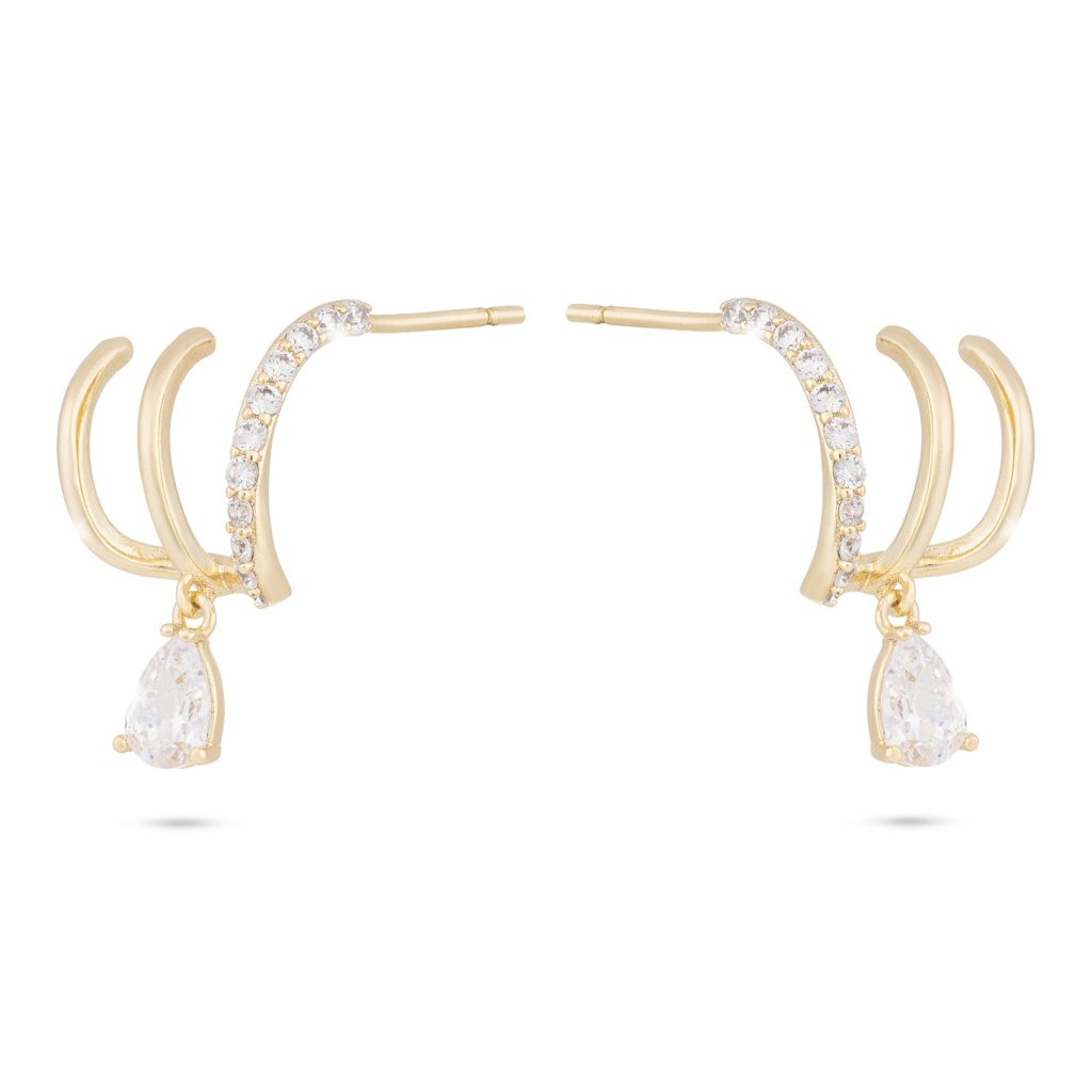Pozlacené náušnice trojitá 14k, visací zirkon ve tvaru kapky 1002473