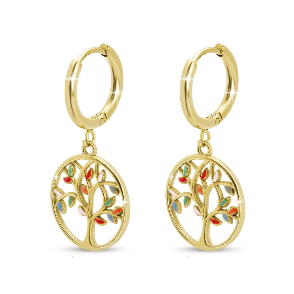 Pozlacené náušnice z chirurgické oceli, strom s barevnými zirkony 1003326