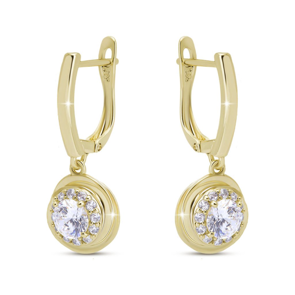 Pozlacené visací náušnice 14k, kruh se zirkony 1003285