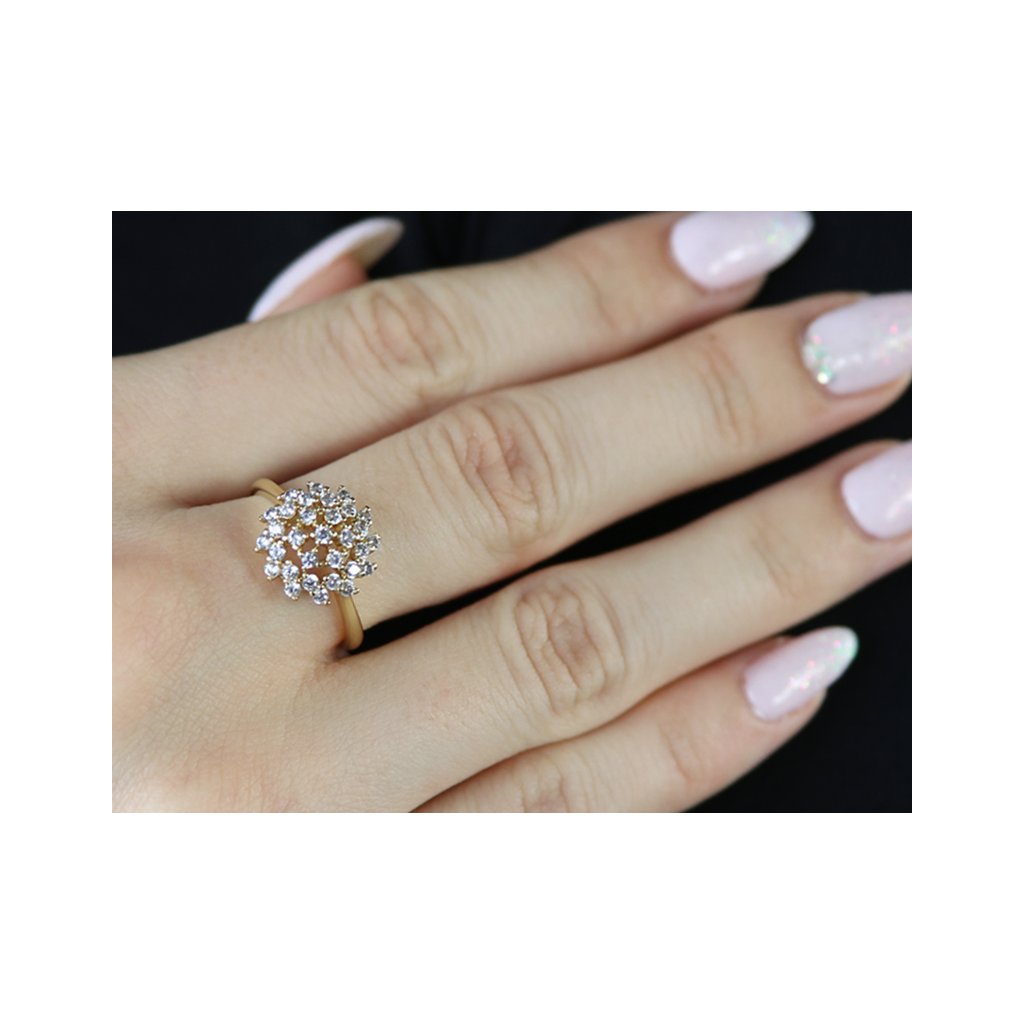 - Pozlacený dámský prsten 14k zlatem, květ vykládaný čirými zirkony.