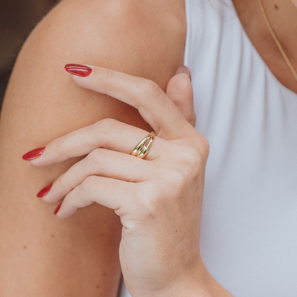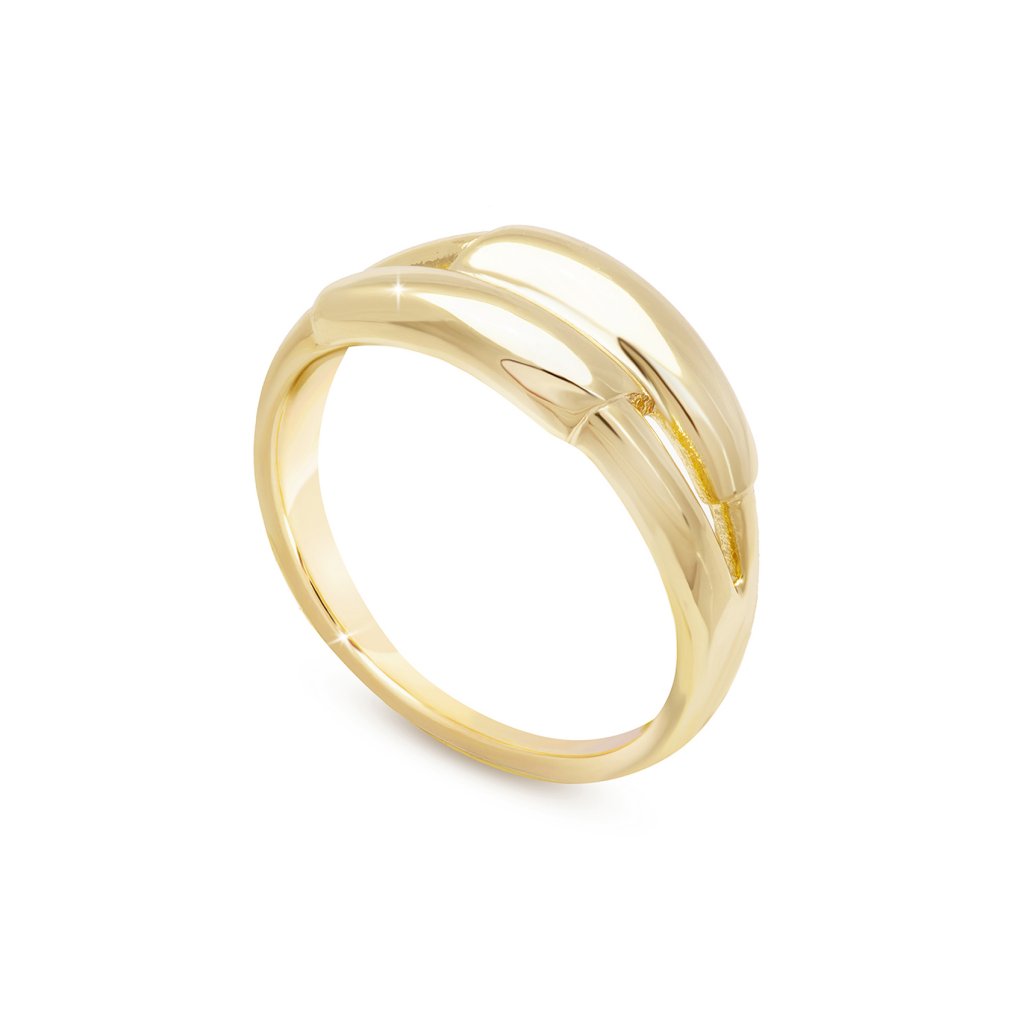 Pozlacený dámský prsten 14k zlatem, lesklý s pletenou ozdobou.